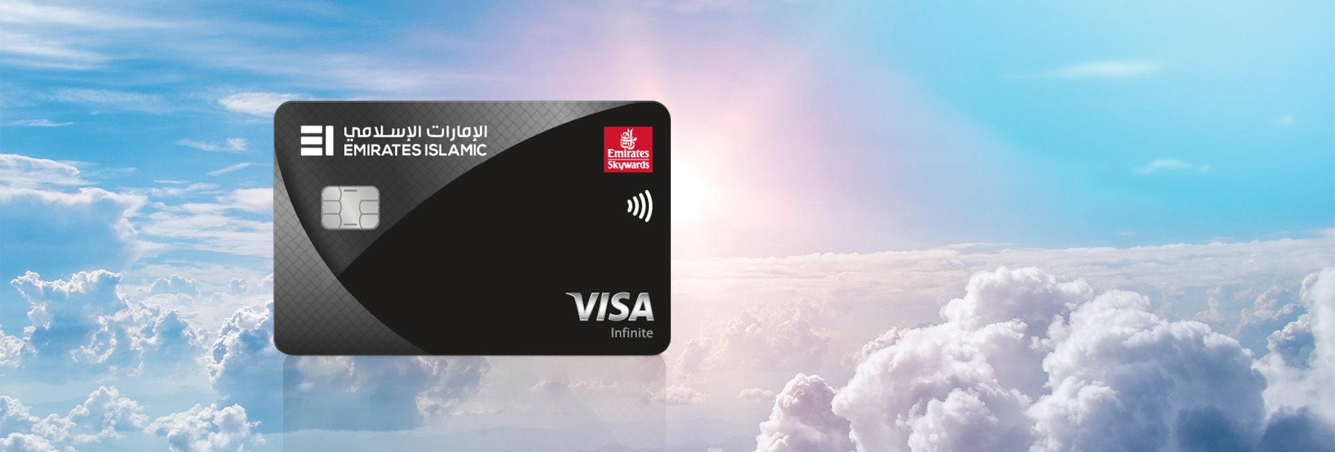 تقدم بطلب الحصول على بطاقة سكاي واردز إنفينيت الائتمانية من الإمارات الإسلامي واستمتع بالإعفاء من رسوم العضوية للسنة الأولى، بالإضافة إلى المكافآت الحصرية ومزايا السفر المميزة. يمكنك أيضاً كسب أميال سكاي واردز على نفقاتك بمنتهى الراحة والسهولة واستبدالها في حجوزات الطيران وترقية درجة الرحلة وغيرها المزيد. اضغط هنا للتقدم بطلبها.