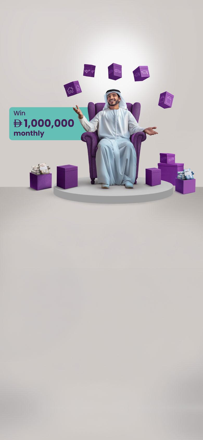 Win a grand cash prize of AED 1,000,000 every month with Kunooz Millionaire Account!