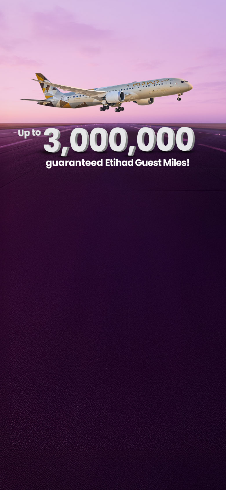 Earn up to 3,000,000 guaranteed Etihad Guest Miles!