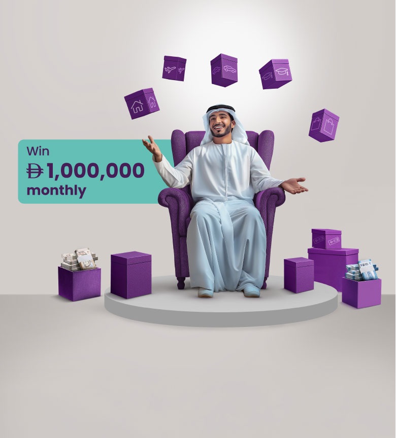 Win a grand cash prize of AED 1,000,000 every month with Kunooz Millionaire Account!