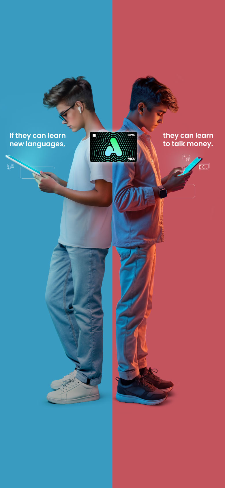 Receive a complimentary ALPHA Debit Card for everyday shopping, online payments, cash withdrawals, and exclusive youth offers.