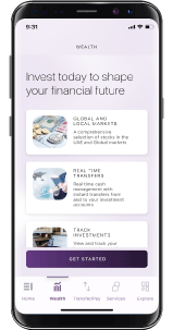 As part of the new digital offering on our new app, you have been exclusively selected to participate our new Digital Wealth offerings, including opening and funding an investment account in either AED or USD, in addition to stock trading in local and international markets.